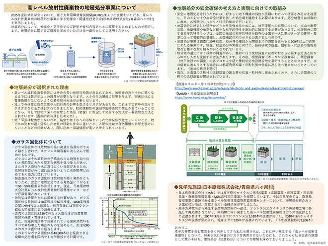 また,『高レベル放射性廃棄物の地層処分事業について』安全確保の考え方や実現に向けての取組み等を紹介しますので,ぜひ資料をご覧ください。
